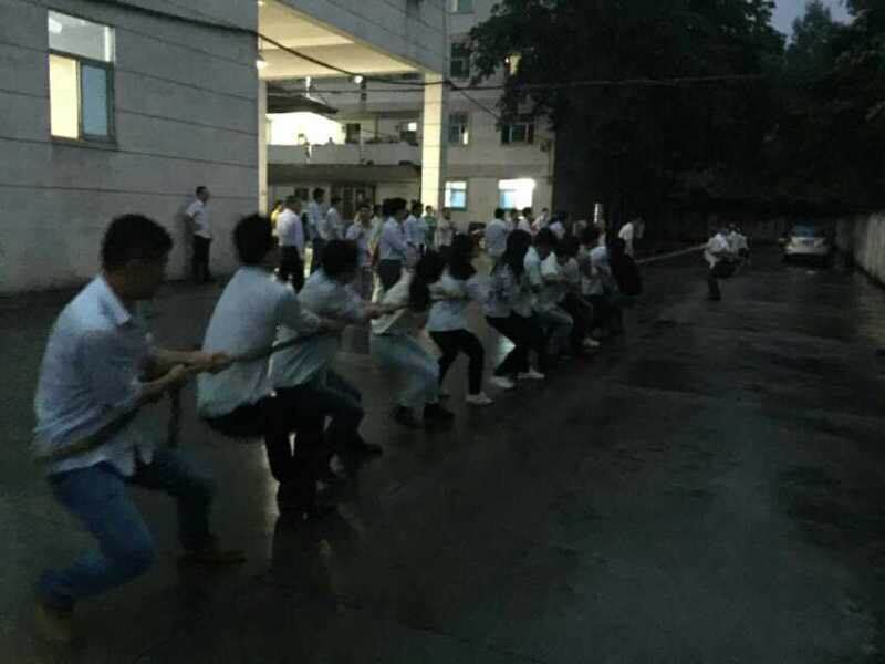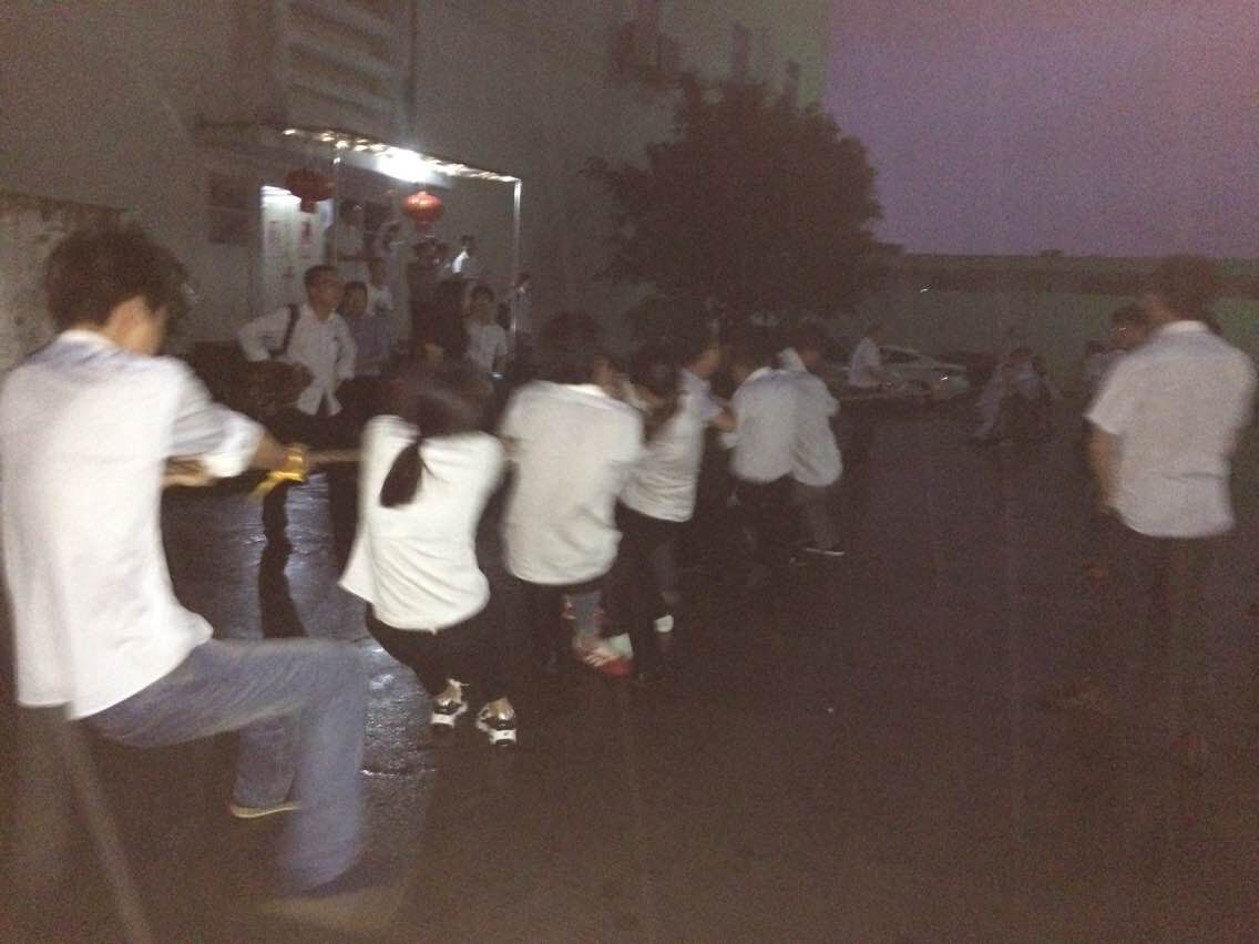 2015年4月7日公司舉行拔河比賽,上午還晴空萬里的天氣,下午卻天公不作美和之前風和日麗的景致截然相反突然下起了大雨,所有一直焦急的等待著雨停,一直到下午6.30分,雖然仍是陰雨飄落,且溫度降低且天已經(jīng)黑了,在經(jīng)過各隊長的商量后一致決定冒雨拔河。