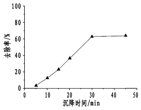 由上圖可知,在前30 min內,總磷去除率隨著沉降時間的延長而增加,但當沉降時間大于30 min后,隨著時間的延長,去除率幾乎沒有變化,說明在30 min時,沉淀絮體已經基本沉淀完成。溶液沉降的目的是使懸浮的污染顆粒物沉降到溶液底部。因此當溶液中懸浮物沉降完全的時候,繼續靜置將不會再有明顯效果。結合實際生產需要,沉降的最佳時間為30 min。